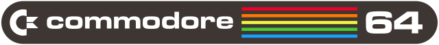 As the VIC-20 had, the 64 eventually shifted to a badge with colorful lines between "commodore" and "64".