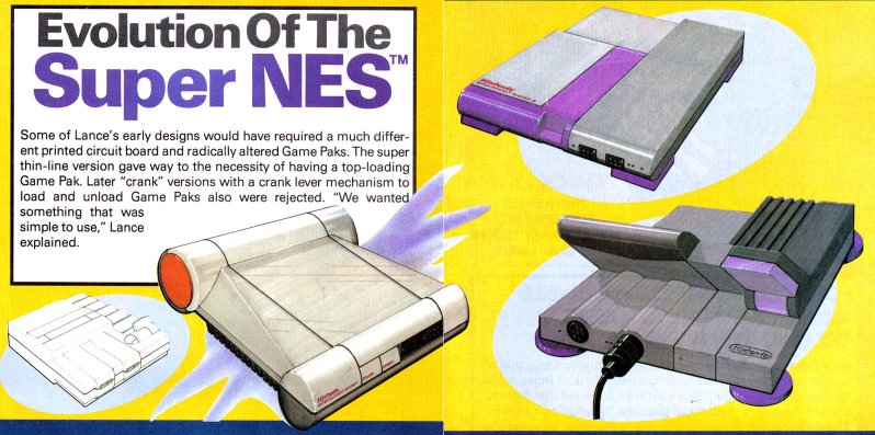 Lance Barr, designer of the NES, also designed the Super Nintendo. He drew up some concept designs, some of which showed an